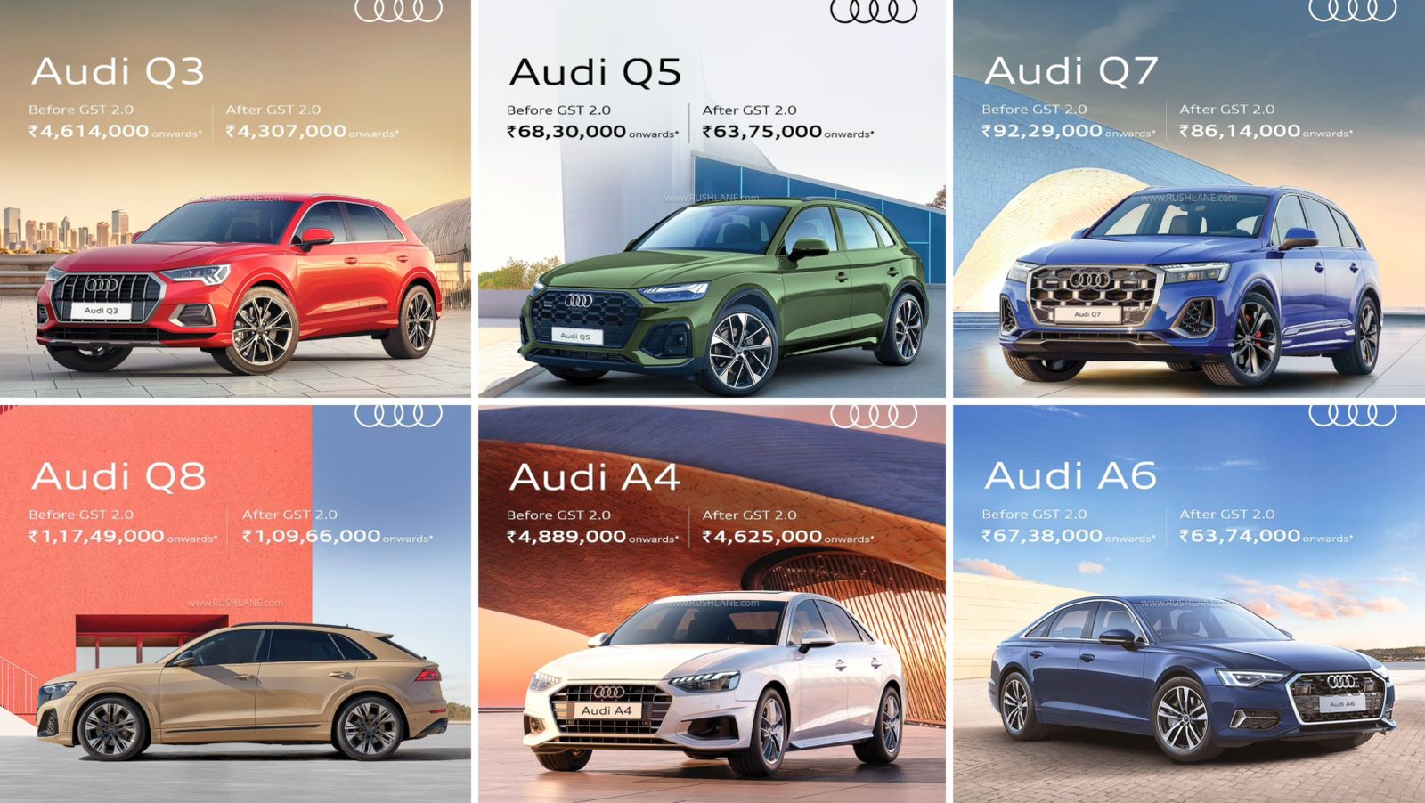 The post Audi India Reduces Prices by up to Rs 7.8 Lakh – A4, A6, Q3, Q5, Q7, Q8 appeared first on RushLane.